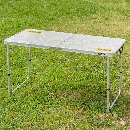 テーブルM 持ち運びに便利な折りたたみ型テーブル軽量タイプ。 サイズは120cm×60cm高さ2段階 54.5cm/65cm バーベキューの食卓用に又は調理用にご利用ください。折りたたみ式なので設置も簡単で取っ手が付いているので持ち運びも楽チンです。 4名様~5名様程度でご利用ください。 設置時には足をしっかり開いてご利用ください。完全に足が開かない状態で利用すると倒れるおそれがあります。